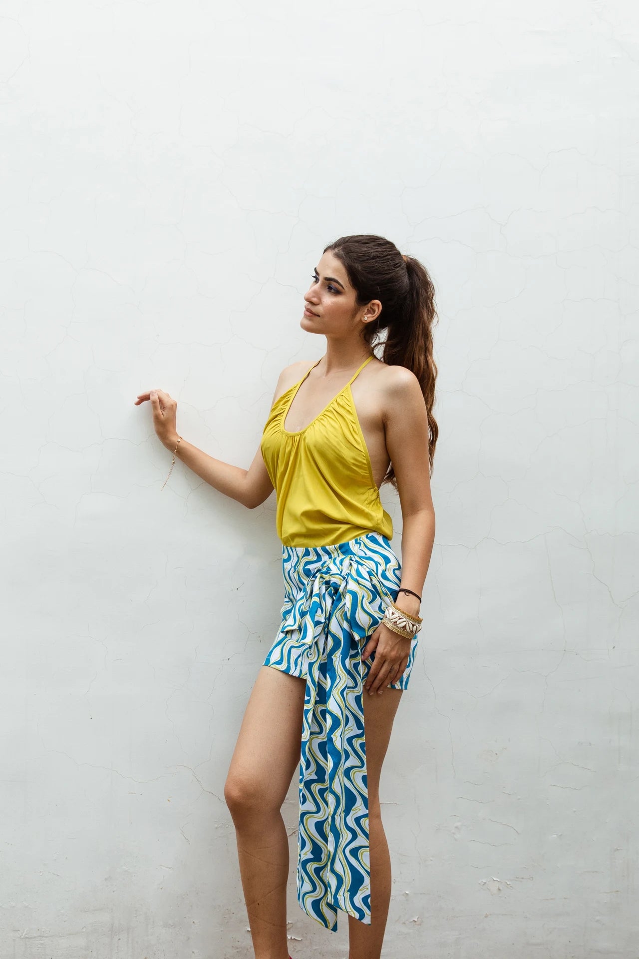 Introducing our Rayon Silk Halter Top—crafted for comfort and style. With a regular length and super-soft feel, this vibrant lime-colored top is the perfect pairing for skirts and jeans alike. Enjoy the blend of elegance and ease in every wear!