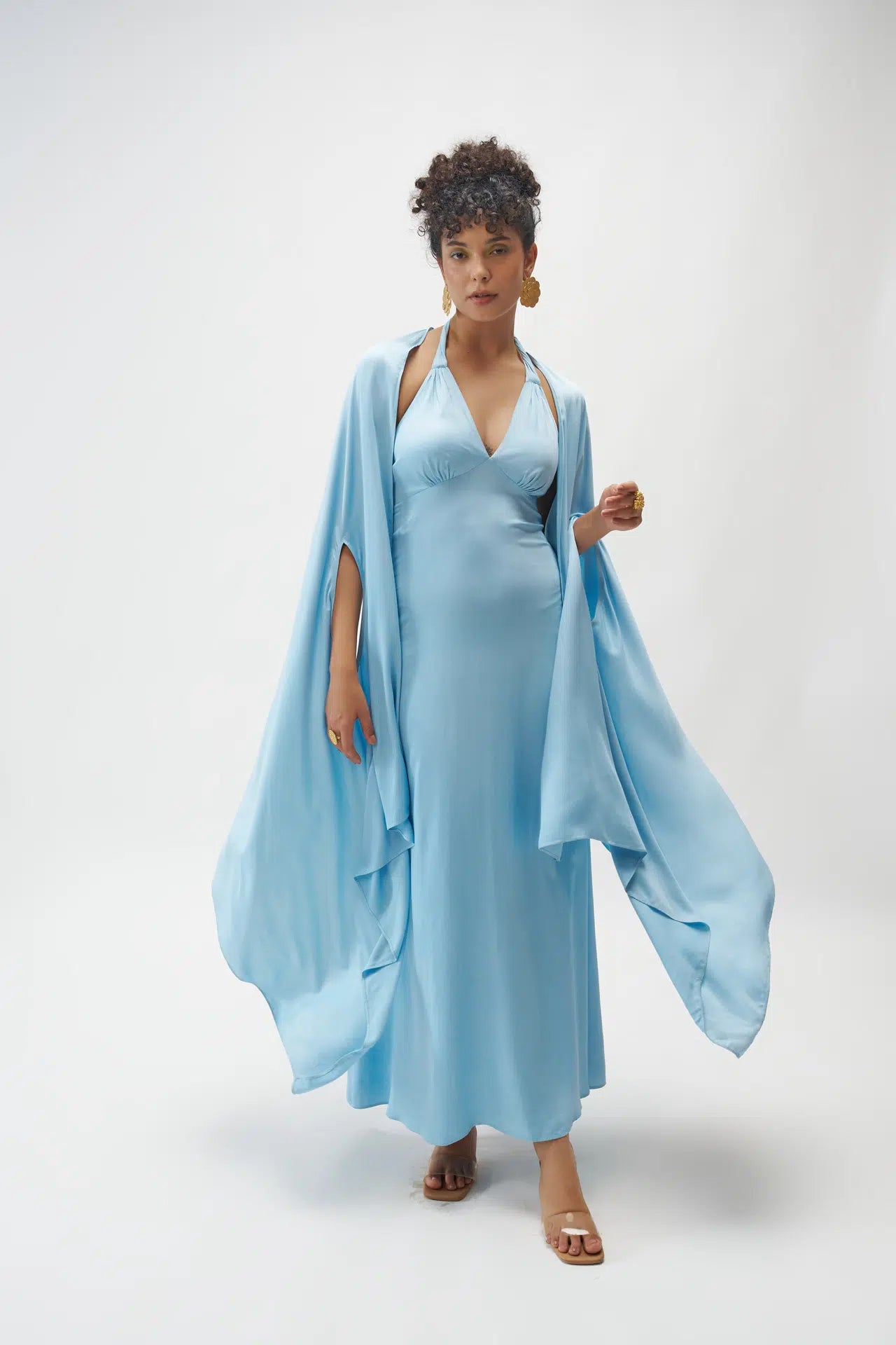 Powder Blue Satin Halter Neck Maxi Dress ✨