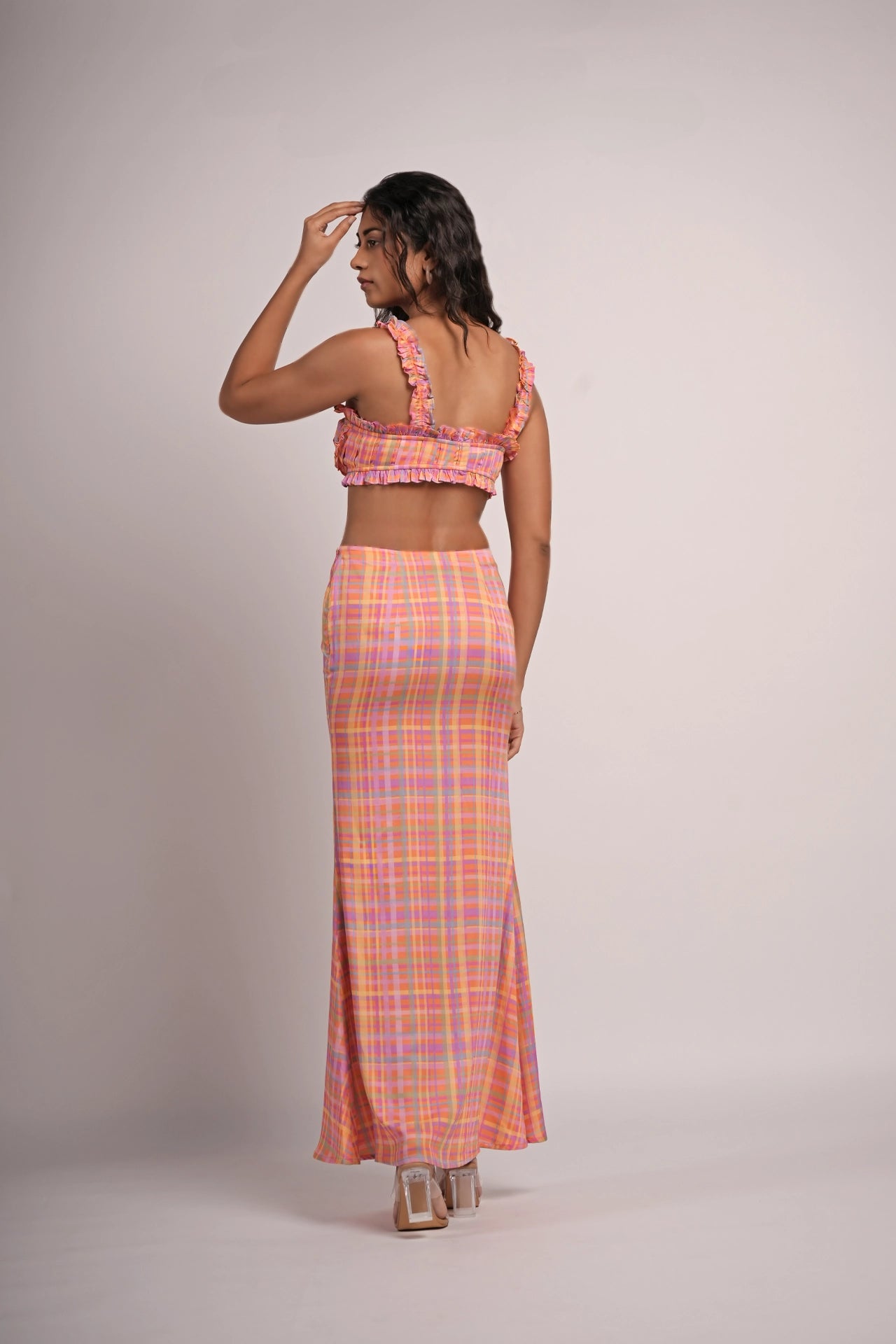 Material: Luxe satin with a vibrant plaid print in candy hues