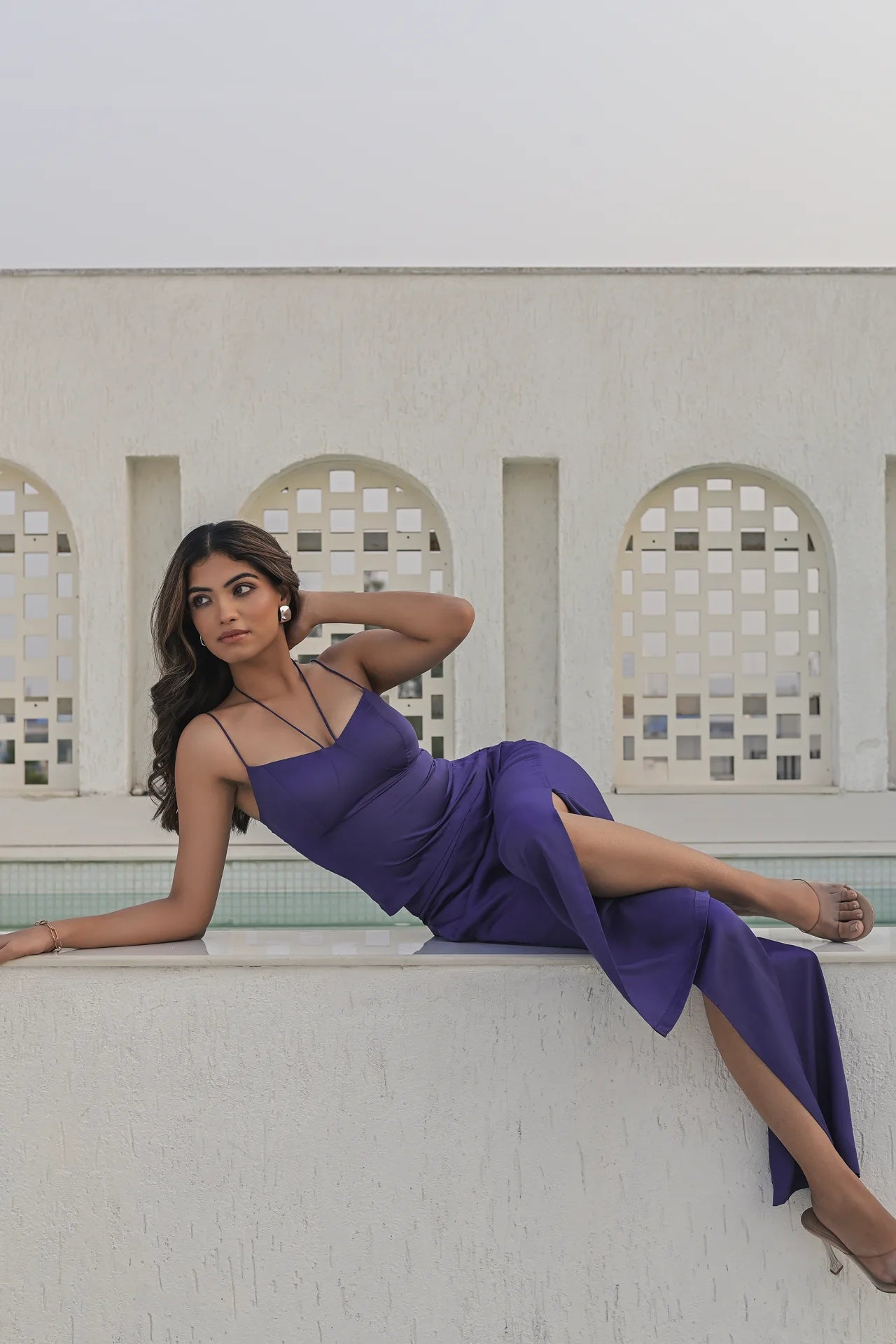- Material: Luxurious satin in rich violet – sustainable opulence