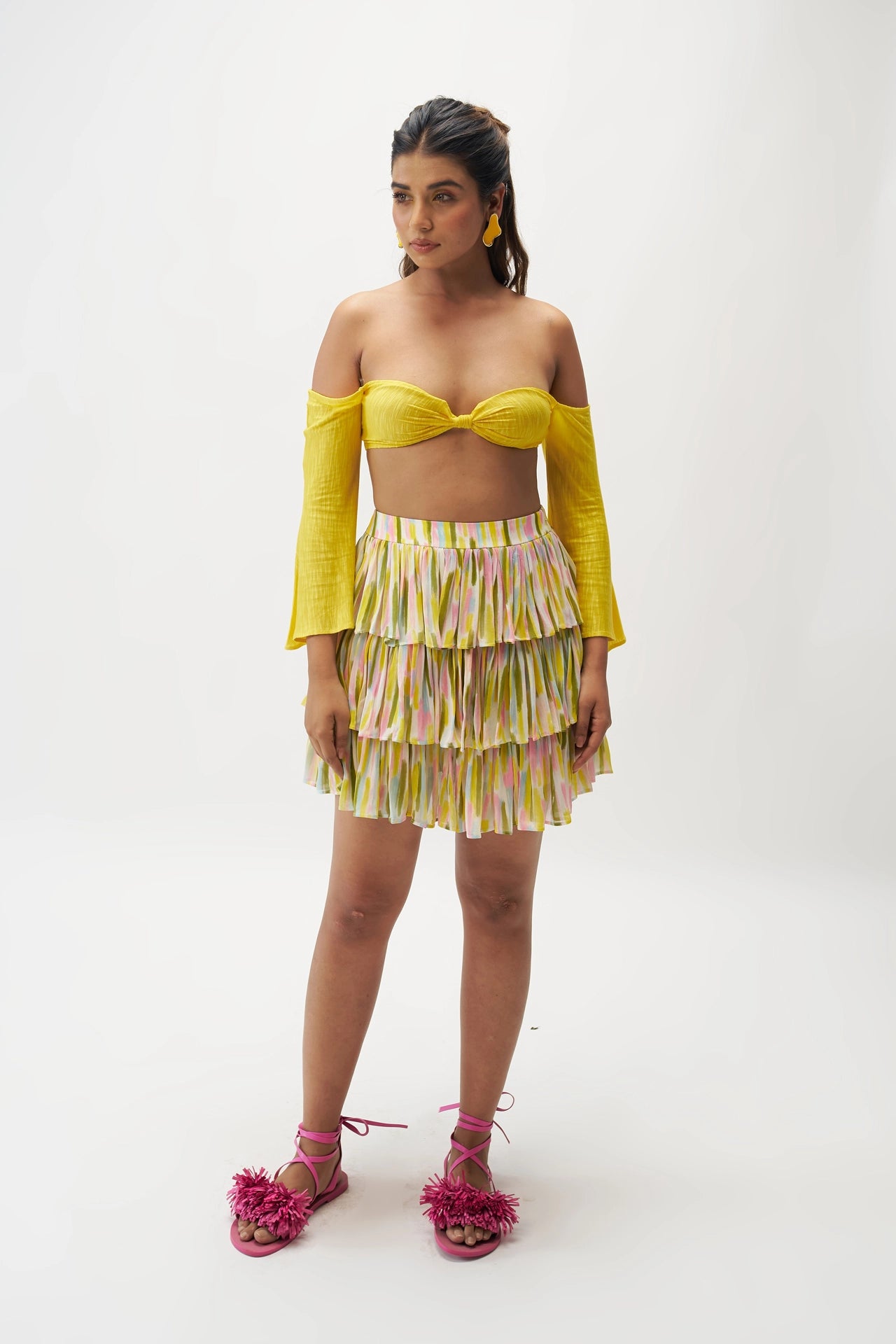 - Details: Three-tier silhouette for volume & a twirl-worthy fit
