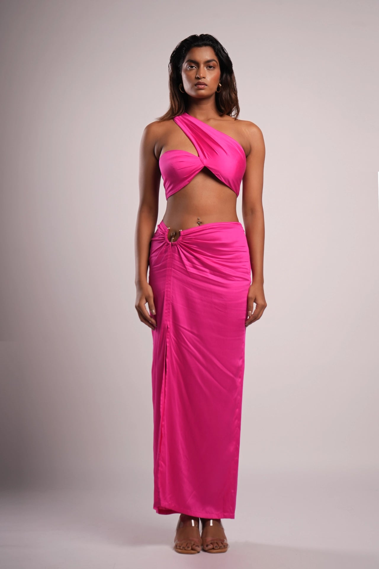 Material: Smooth satin in a bold magenta pink that radiates confidence and luxe charm