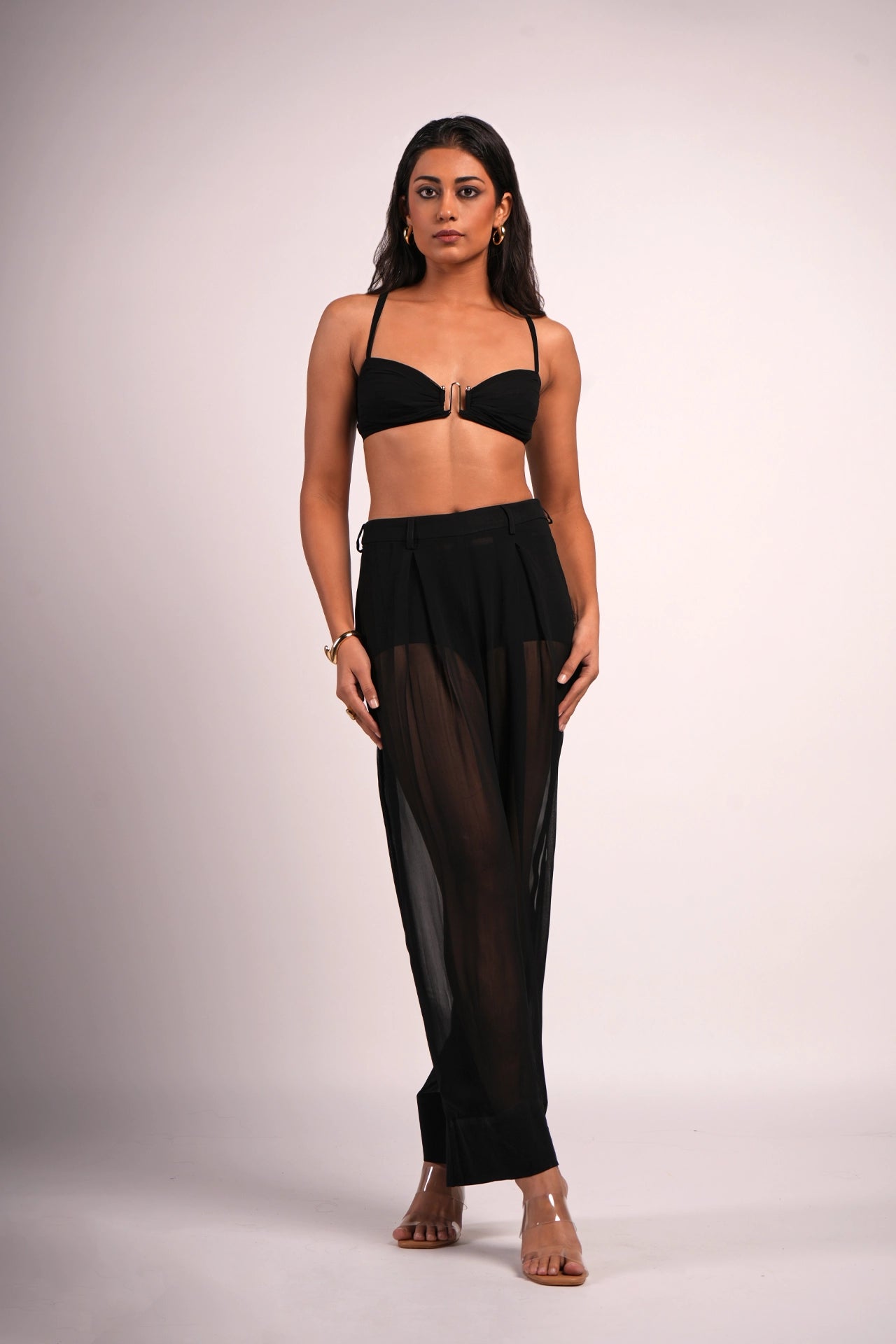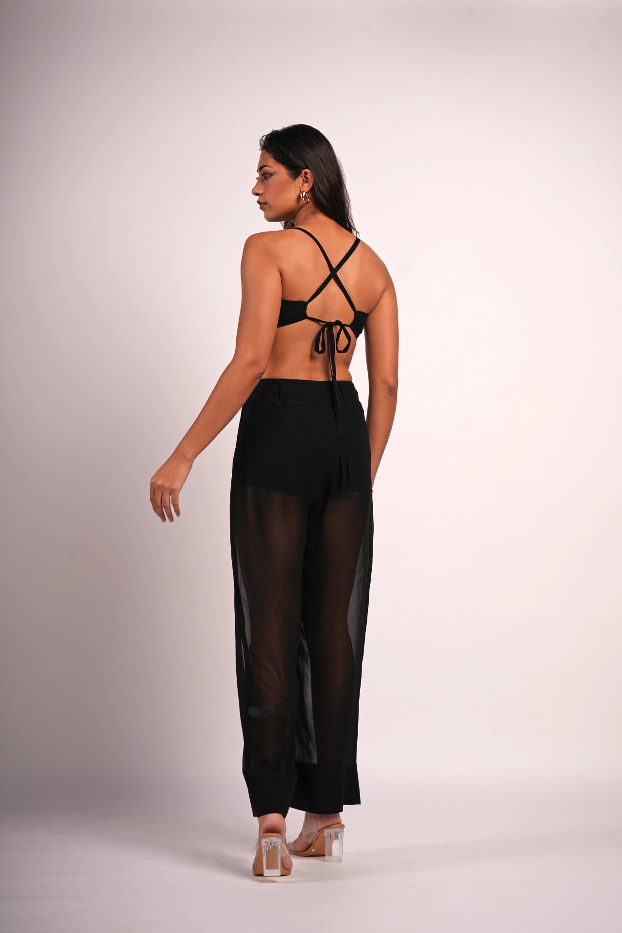 Material: Lightweight, breathable Georgette in classic black — completely sheer and unlined